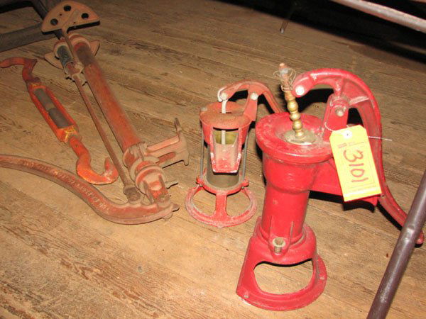 THREE HAND WATER PUMPS, ONE ITEM WITH HOOK ON EAC