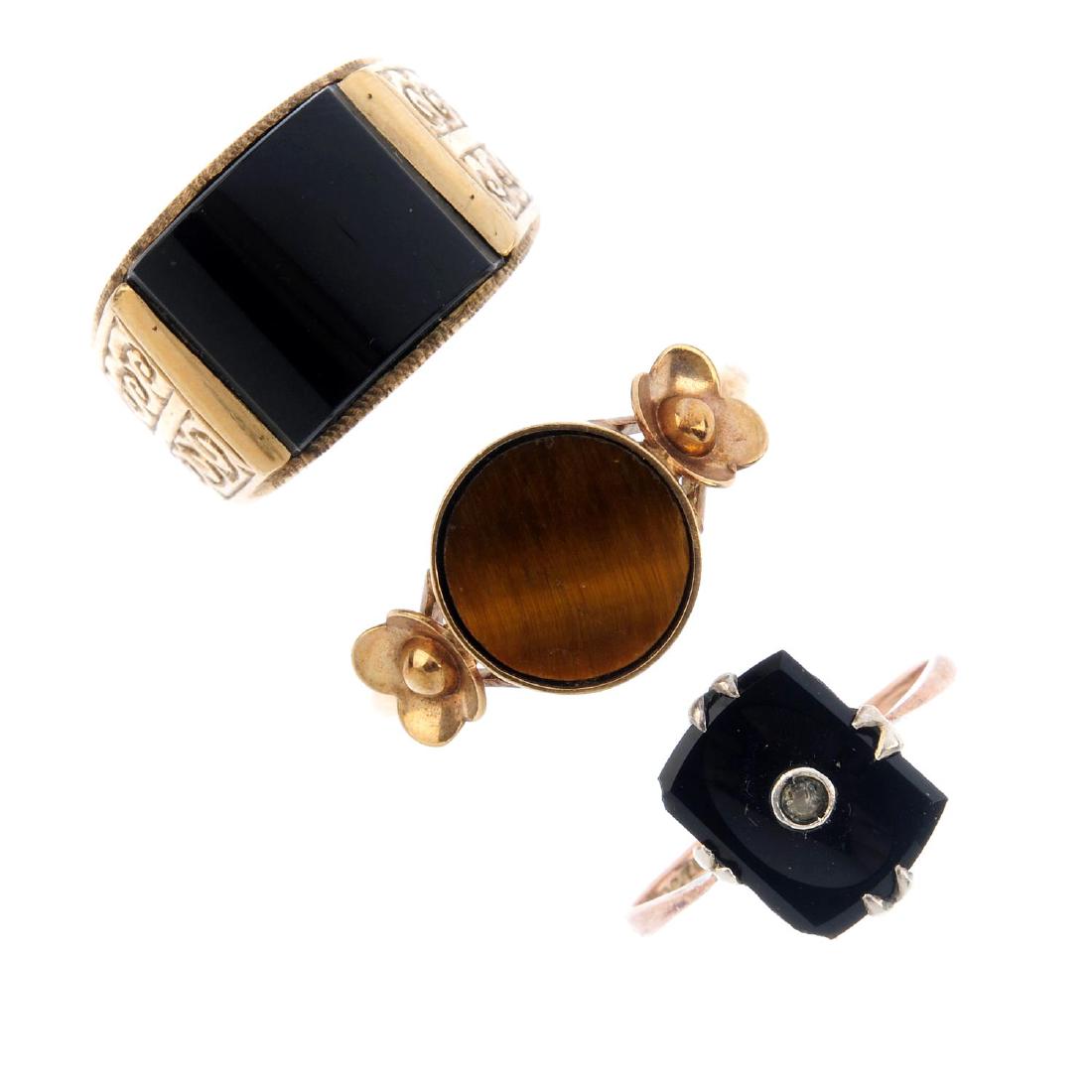 Three hardstone rings. To include an onyx and paste