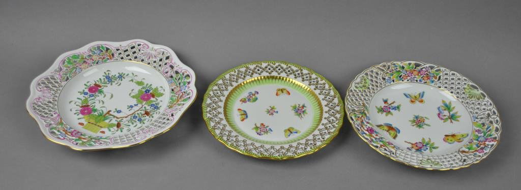 THREE HEREND RETICULATED CABINET PLATES