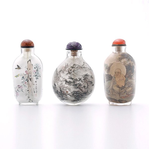 Three Inside-Painted Glass Snuff Bottles, 20th C.