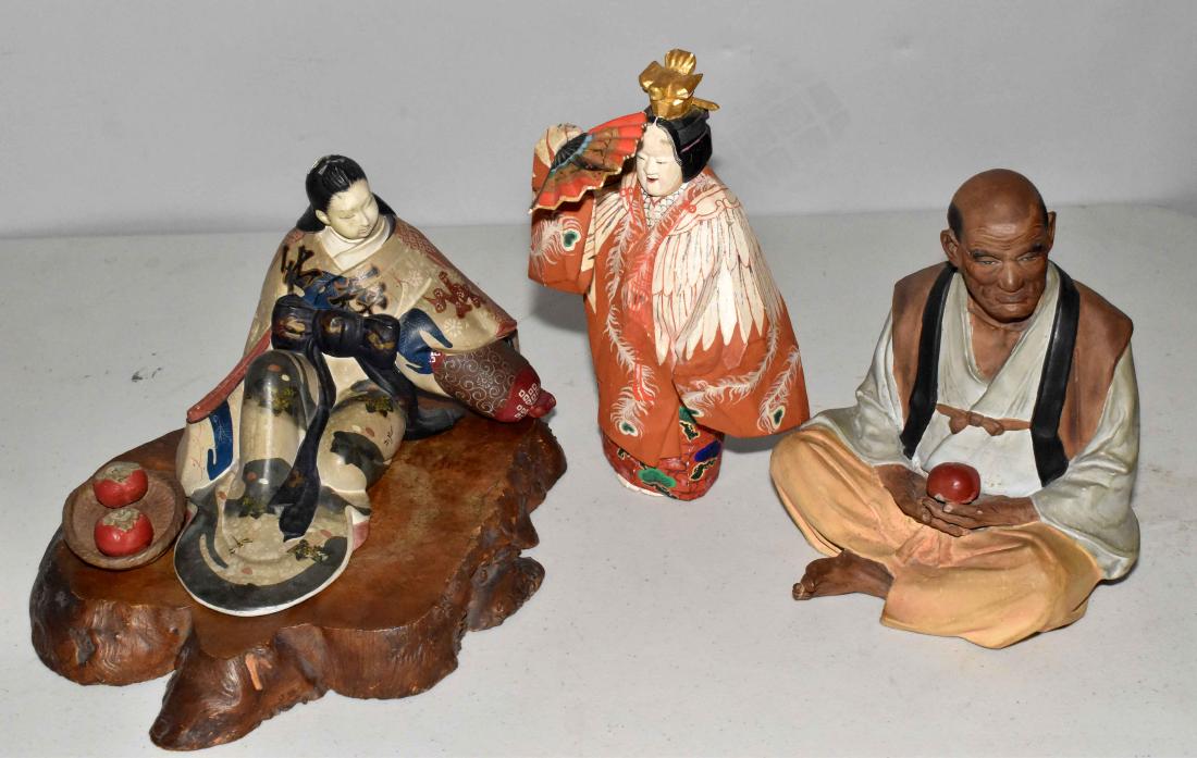 THREE JAPANESE FIGURINES. Largest: 10''H.