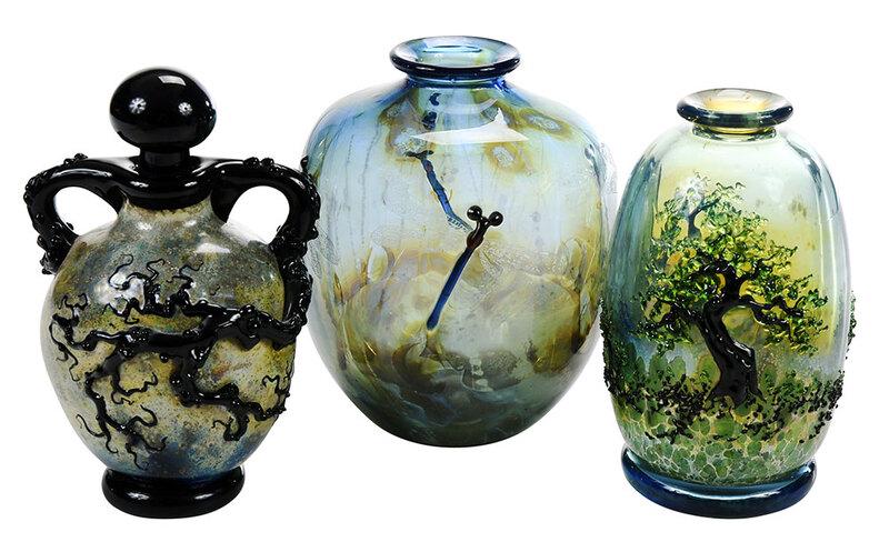 Art Glass Vessels Vases Artist Signed (3)