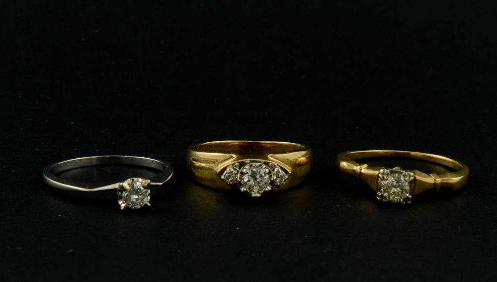 Three Ladies 14K Diamond Solitaire Rings