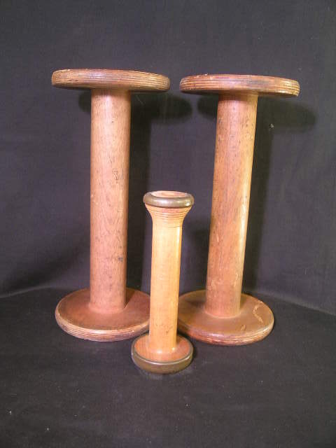 THREE LARGE ANTIQUE WOOD THREAD SPOOLS