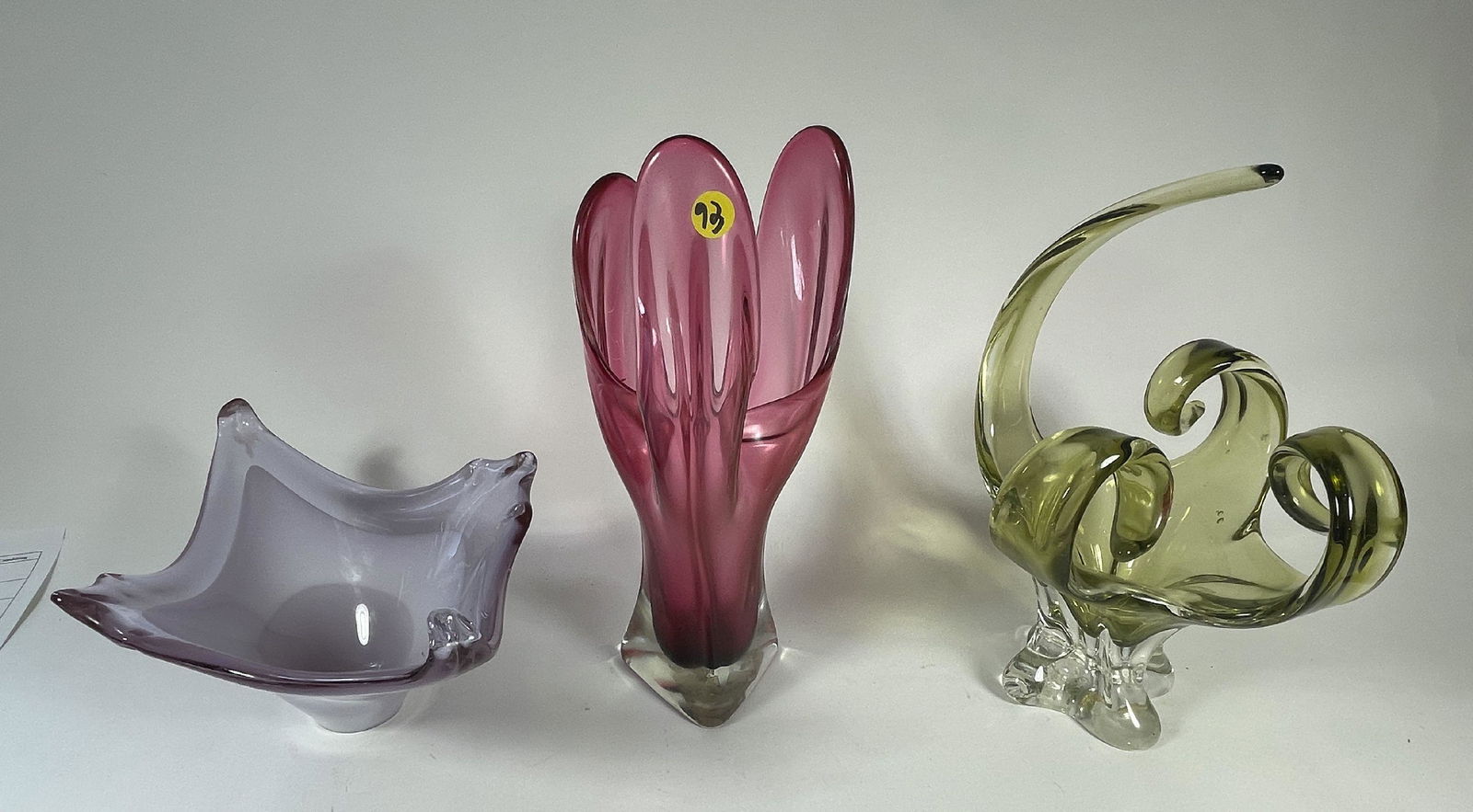 Three Large Murano Vases, 12" And Smaller