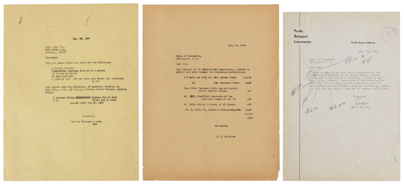 Three letters by Ed Ricketts