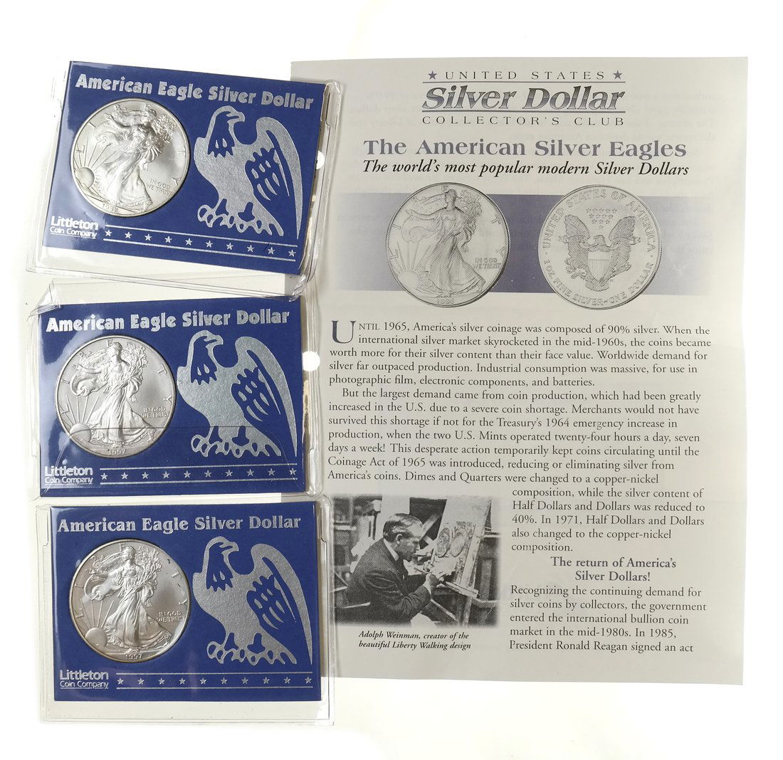 LOT (3) US MINT LIBERTY/CONSTITUTION SILVER ROUNDSFeb 21, 20263 GRADED AMERICAN SILVER EAGLE COINS 2019 TO 2021Feb 15, 2026Lot of 3 Silver Walking Liberty Half Dollars - 1941, 1942, 1943Lot of 3 Silver Walking Liberty Half Dollars - 1942-S, 1943, 1944-SFOUR MODERN SILVER DOLLARS 1 TROY OUNCE EACH15 hrs Left1986 U.S. Mint Statue of Liberty Commemorative Coin Set - (1) Silver Dollar & (1) Half DollarFeb 12, 20263pc 1939 to 1945 Walking Liberty Silver Half DollarsFeb 21, 2026AMERICAN SILVER EAGLE BULLION COINS MINT STATE GRADEDFeb 15, 20262pc 2003 1/2 Troy Ounce Five Dollar Silver Rounds6 days Left1986 U.S. Mint Statue of Liberty Commemorative Coin Set - (1) Silver Dollar & (1) Half DollarFeb 12, 20261941, 1958, and 1964 Silver Half Dollar Collection Set6 days Left2001-W One Ounce Proof Silver EagleFeb 12, 20264 Walking Liberty Silver Half Dollars c1936-455 days Left2003-W One Ounce Proof Silver EagleFeb 12, 2026Walking Liberty, American Eagle, and Franklin Half Dollar AlbumsFeb 16, 20262003-W American Eagle Proof Silver Coin 1 oz Uncertified3 days Left