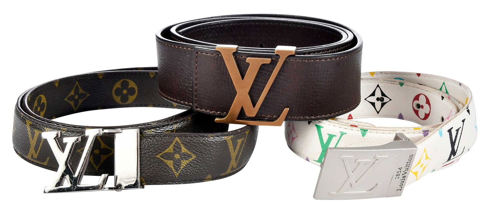 SoldThree Belts: Louis Vuitton, Hermès, GucciA Gucci monogram leather belt, a Louis Vuitton belt, and an Hermès belt. All size 40. Wear to leather on Gucci belt. | You have additional shipping options, and are not required to use Live Shipping!See Sold Price