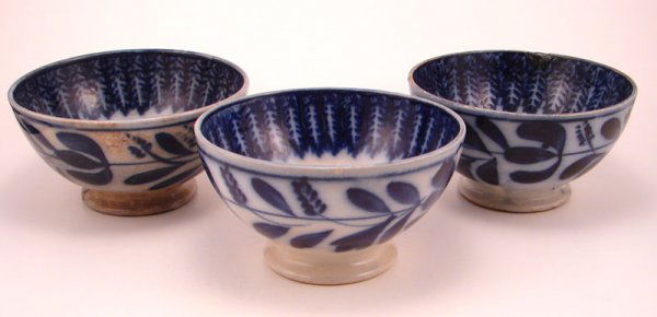 Three Maestricht Flow Blue Spinach Pattern Bowls