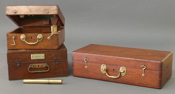 Three mahogany nautical instrument boxes.