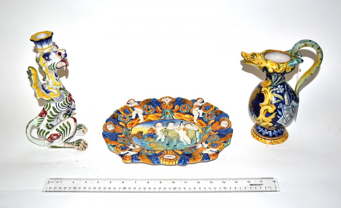 A lot of three Saxony style decorated porcelain figural groupsFeb 24, 2026A lot of two Chinese blue on white figural and phoenix decorated porcelain vasesFeb 24, 2026A lot of three large Dutch Delft polychrome glazed ceramic decorated dishesFeb 24, 2026A composed lot of three Italian majolic style polychrome decorated and glazed ceramic objectsFeb 24, 2026(3) DOULTON PITCHERS/VASE W/FLORAL DESIGN, 19/20TH C.Feb 21, 20263 Antique Polychrome Faience Items: Albarello, Tazza, Inkwell18 hrs LeftTHREE PIECES OF CONTINENTAL MAJOLICA Late 19th CenturyFeb 18, 2026Antique Gien France Renaissance Hand Painted Faience Fond Blue CherubsTray with Two Pitchers1 day LeftItalian Majolica Chargers, Possibly Battaglia5 days LeftAntique Meissen Cherub European Porcelain Figurine6 days LeftTWO ANTIQUE FISH MOTIF MAJOLICA PIECESFeb 07, 2026Vtg Sgn Italian Majolica Figural Pedestal Bowl5 days LeftA Group of Four German Porcelain Cherub Figures5 days LeftPAIR OF HAND PAINTED VASESFeb 07, 2026Antique Palatial Majolica ChargerFeb 07, 2026AFTER CASTELLI PAIR OF 19TH C ITALIAN MAJOLICA PLATES19 hrs Left