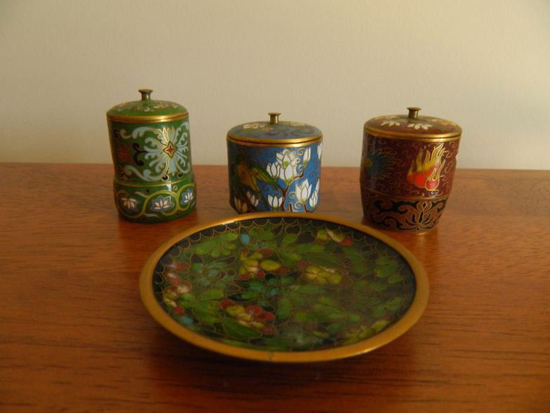 Three miniature oriental lidded jars & one small di