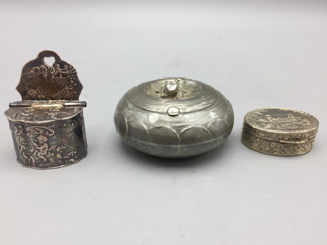 Lot of 4 Trinket Boxes2 days LeftMeridan, Imperial Silver & Others Assorted 9pc LOTFeb 26, 2026Cut Glass Sterling Silver Mounted Dresser Jars LOT21 hrs LeftSet of (3) Silver Plate & Tin PlattersFeb 10, 2026(4) PAINTED TOLE TEA CANISTERS, 2 NOW FASHIONED AS TABLE LAMPSFeb 21, 2026WWII Soviet Red Army Belt Buckle & Oilers(3) SMALL SILVER MOUNTED BOXESFeb 20, 2026A Trio of Silver-Plated and Cut Glass Trinket Vessels including Godinger5 days LeftThree silver cigarette boxes,Group of 5 Silver ArticlesFeb 26, 2026A three-piece silver condiment set,Hoi An Cargo Shipwreck Glazed Blue and White Lidded Box CollectionMar 07, 2026Collection of Silver Diminutive Covered Boxes, 5Feb 26, 2026THREE SILVER BOXES, INDIA, 20TH CENTURY5 days LeftA Collection of Four Enameled and Engraved Brass Decorative Items5 days LeftTwo Shan Burmese Silver Betel Boxes2 days Left