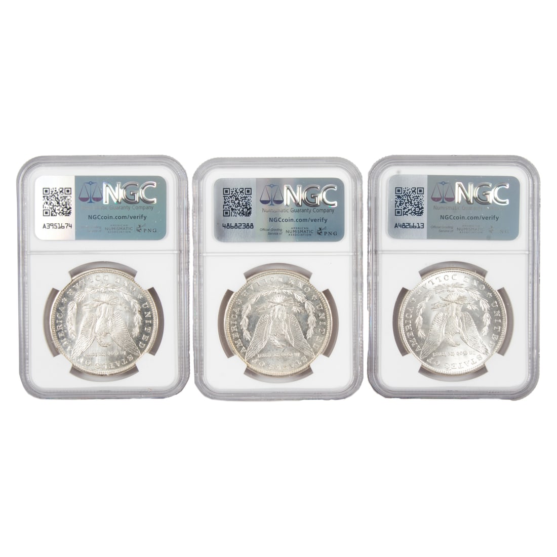 Three Morgan dollars: 1885 NGCMS64