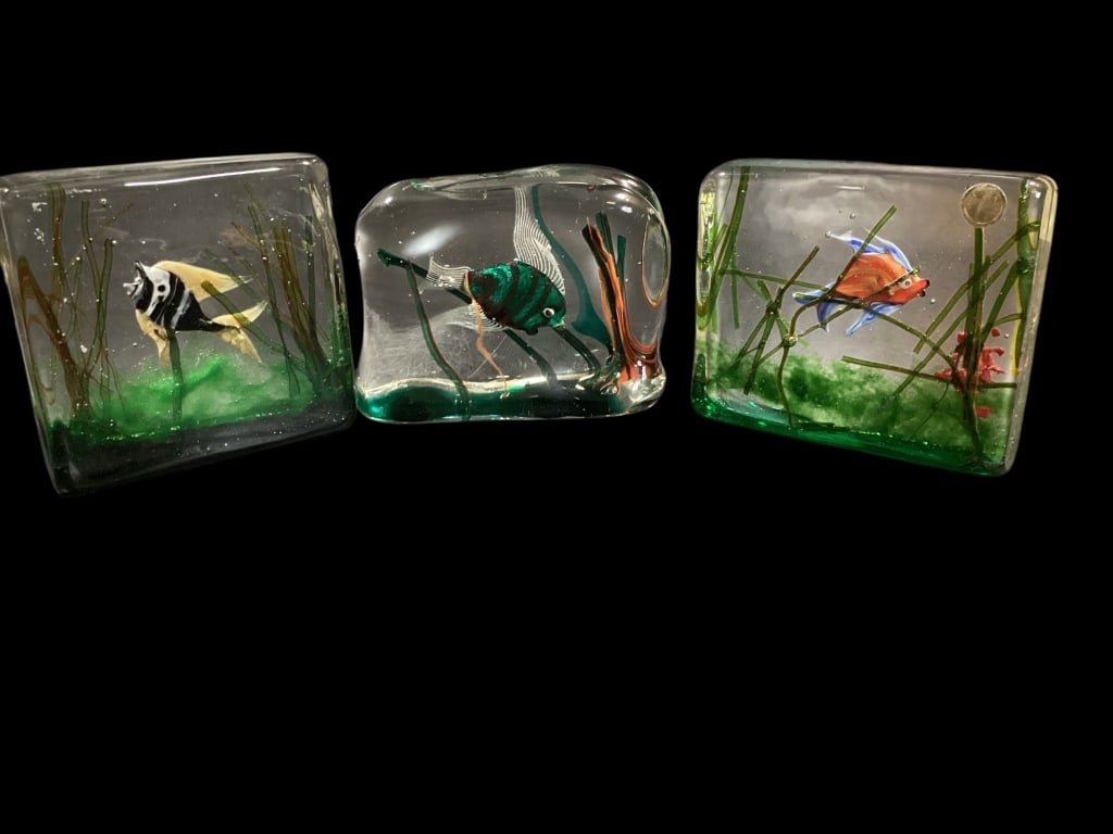 Three Murano Aquarium Paperweights