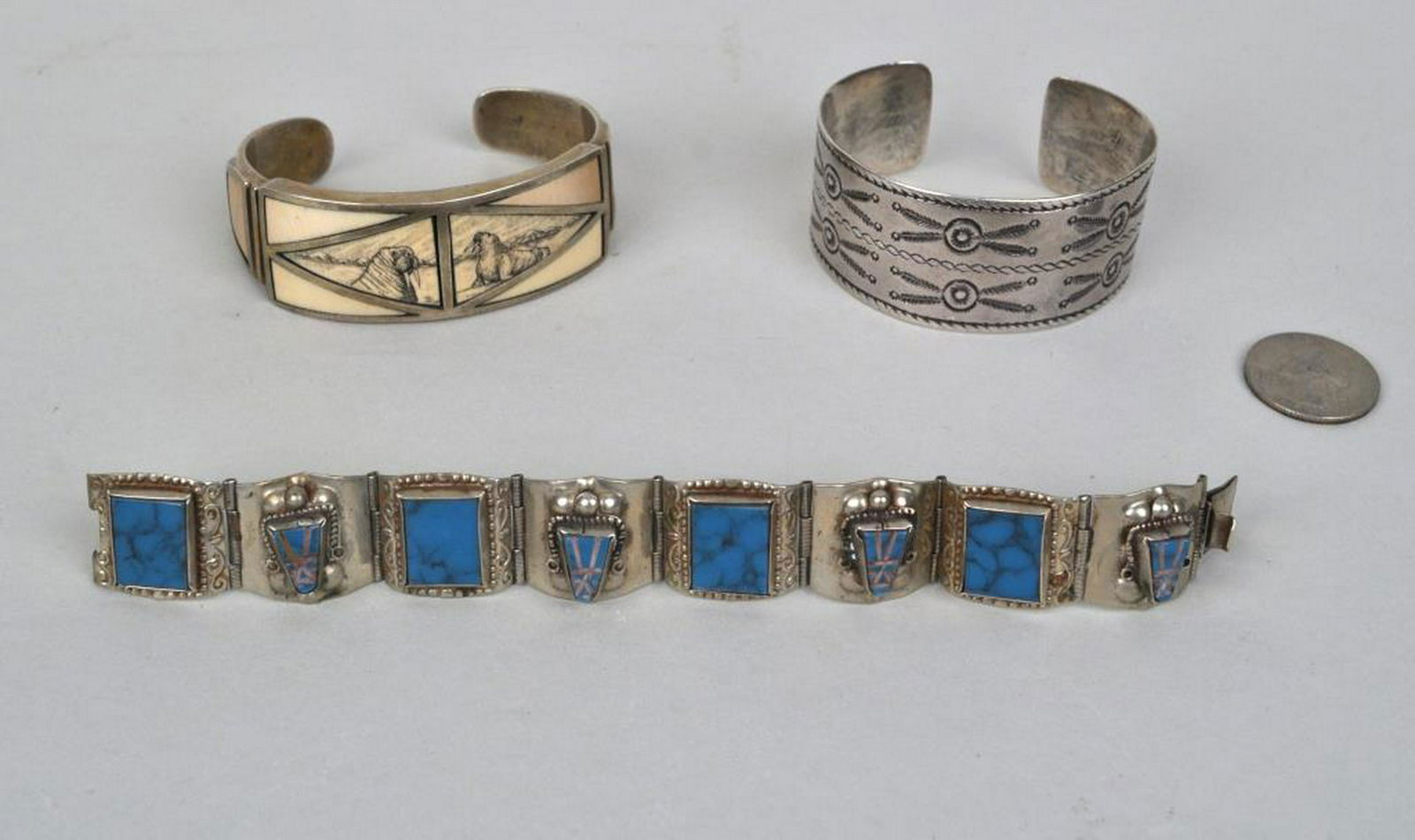 Lot of Sterling Silver JewelryMar 05, 2026Sterling Silver 925 Turquoise Bracelets 4pc LOT2 days LeftLot of 2 Sterling Silver Cuff BraceletsMar 05, 2026NATIVE AMERICAN / SOUTHWESTERN-STYLE STERLING / SILVER JEWELRY, LOT OF TENMar 04, 2026NATIVE AMERICAN / SOUTHWESTERN-STYLE STERLING / SILVER JEWELRY, LOT OF TENMar 04, 2026VINTAGE / CONTEMPORARY MEXICAN STERLING AND 0.950 SILVER JEWELRY, LOT OF FOURMar 04, 2026VINTAGE MEXICAN STERLING SILVER AND STONE / GLASS BRACELETS, LOT OF THREEMar 04, 2026NATIVE AMERICAN / SOUTHWESTERN-STYLE STERLING / SILVER JEWELRY, LOT OF 14 PIECESMar 04, 2026NATIVE AMERICAN NAVAJO AND OTHER STERLING SILVER JEWELRY, LOT OF SIXMar 04, 2026NATIVE AMERICAN / SOUTHWESTERN-STYLE STERLING AND OTHER SILVER WATCH BRACELET TIPS / ENDS, LOT OFMar 04, 2026VINTAGE / CONTEMPORARY MEXICAN MODERN STERLING SILVER AND STONE / OTHER BANGLE BRACELETS, LOT OFMar 04, 2026NATIVE AMERICAN AND SOUTHWESTERN-STYLE STERLING AND OTHER SILVER CUFF BRACELETS, LOT OF FOURMar 04, 2026VINTAGE SOUTHWESTERN SHOP NATIVE AMERICAN-STYLE STERLING SILVER AND TURQUOISE CUFF BRACELETS, LOT OFMar 04, 2026NATIVE AMERICAN ZUNI INLAID STERLING / SILVER BELT BUCKLES AND BOLO TIE, LOT OF THREEMar 04, 2026VINTAGE / CONTEMPORARY MEXICAN MODERN STERLING SILVER AND STONE / OTHER CUFF BRACELETS, LOT OF FOURMar 04, 2026NATIVE AMERICAN ZUNI AND POSSIBLY OTHER STERLING / SILVER AND FIGURAL INLAY JEWELRY, LOT OF SEVENMar 04, 2026