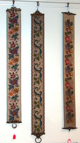 THREE NEEDLEPOINT BELLPULLS, circa 1900. - 48 in. l