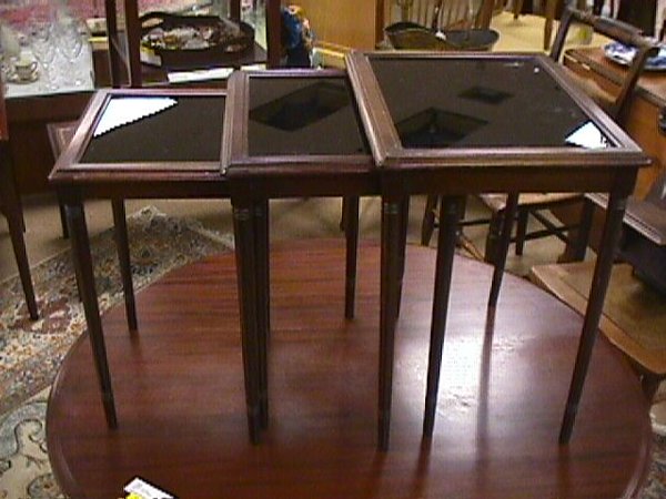 Set of Four Mahogany Nesting Tables5 days LeftSet of Three Mahogany Nesting Tables5 days LeftMid-Century Modern Gold Metal & Glass Nesting Tables (Set of 3)Feb 19, 2026Modern Wood and Glass Top Table, 1980sFeb 26, 2026Nesting Side Tables, 1950s, Set of 3Modern Glass Top Metal Side Tables, PairMar 26, 2026Vintage Wooden Coffee Table with Glass Top and Lower ShelfMar 04, 2026Mid Century Modern Round Trinity Coffee Table Nest5 days LeftNEST OF THREE FRENCH GILT IRON AND BLACK GLASS NEST OF TABLES.Feb 25, 2026Three Mahogany & Rosewood Nesting Tables with Brass Gallery by Althorp Theodore Alexander5 days LeftVintage Wooden Coffee Table with Glass Top and Lower Shelf663 Lots AwayA nest of 3 wooden tables by Waring & Gillows 63 x 61 x 38cm.10 hrs LeftModern Wooden Coffee Table with Four Glass Insets2 days LeftMODERN RECTANGULAR GLASS TOP TABLE DINING TABLE WITH X-FORM BASE H: 29". TOP, 81 3/4" X 46 1/2".17 hrs LeftElegant Pair of Regency Glass Top Lamp End Tables5 days LeftAdjustable Serving TableFeb 22, 2026