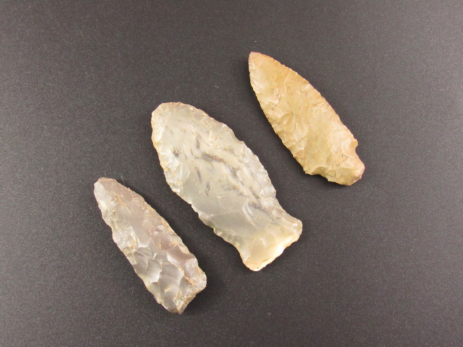 Three Nice Prehistoric Native American Indian Flint Arrowheads