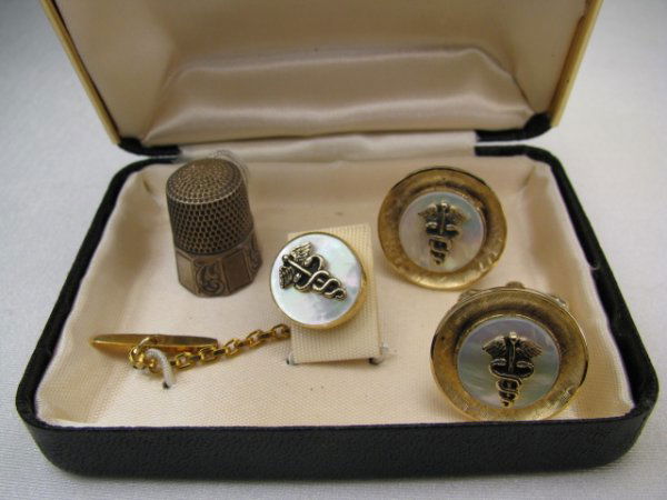 THREE NICE STICK PINS CUFF LINKS STERLING THIMBLE