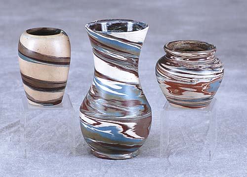 Three Niloak missionware pottery vases Date:circa