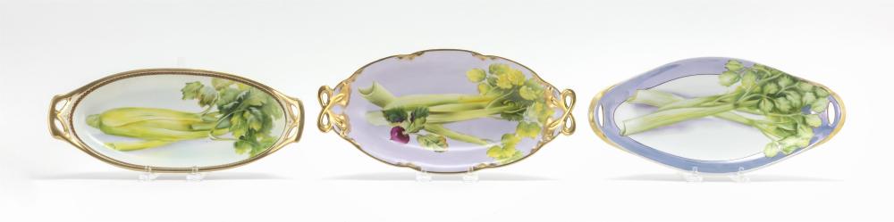 THREE NORITAKE PORCELAIN CELERY DISHES Oval, with