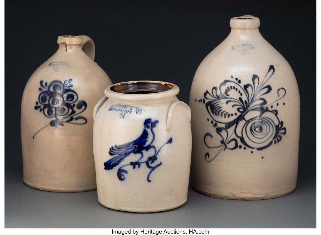 Lot of Pottery ItemsMar 04, 2026Lot of Pottery ItemsMar 04, 2026PENNSYLVANIA CONTEMPORARY EARTHENWARE / REDWARE ARTICLES, LOT OF THREEMar 06, 2026WEST VIRGINIA STENCILED STONEWARE JARS, LOT OF THREEMar 06, 2026AMERICAN FOLK POTTERY DIMINUTIVE VESSELS, LOT OF FIVEMar 06, 2026BALTIMORE, MARYLAND DECORATED STONEWARE JARS, LOT OF FOURMar 06, 2026MID-ATLANTIC DECORATED STONEWARE JARS, LOT OF THREEMar 06, 2026NORTHEASTERN / PENNSYLVANIA EARTHENWARE AND STONEWARE ARTICLES, LOT OF THREEMar 06, 2026MID-ATLANTIC DECORATED STONEWARE JARS, LOT OF FOURMar 06, 2026ALEXANDRIA, VIRGINIA MERCHANT'S STENCILED STONEWARE JARS, LOT OF THREEMar 06, 2026ENGLISH FLOW BLUE IRONSTONE TABLE ARTICLES, LOT OF THREEMar 05, 2026A lot of three Chinese blue and white variously decorated porcelain vases2 days LeftSTAMPED "WHITES" NEW YORK DECORATED STONEWARE JUGS, LOT OF TWOMar 06, 2026STAMPED MASSACHUSETTS AND NEW YORK DECORATED STONEWARE JUGS, LOT OF TWOMar 06, 2026A lot of three variously decorated and shaped Chinese porcelain vases2 days LeftWESTERN PENNSYLVANIA AND WEST VIRGINIA STENCILED STONEWARE ARTICLES, LOT OF TWOMar 06, 2026