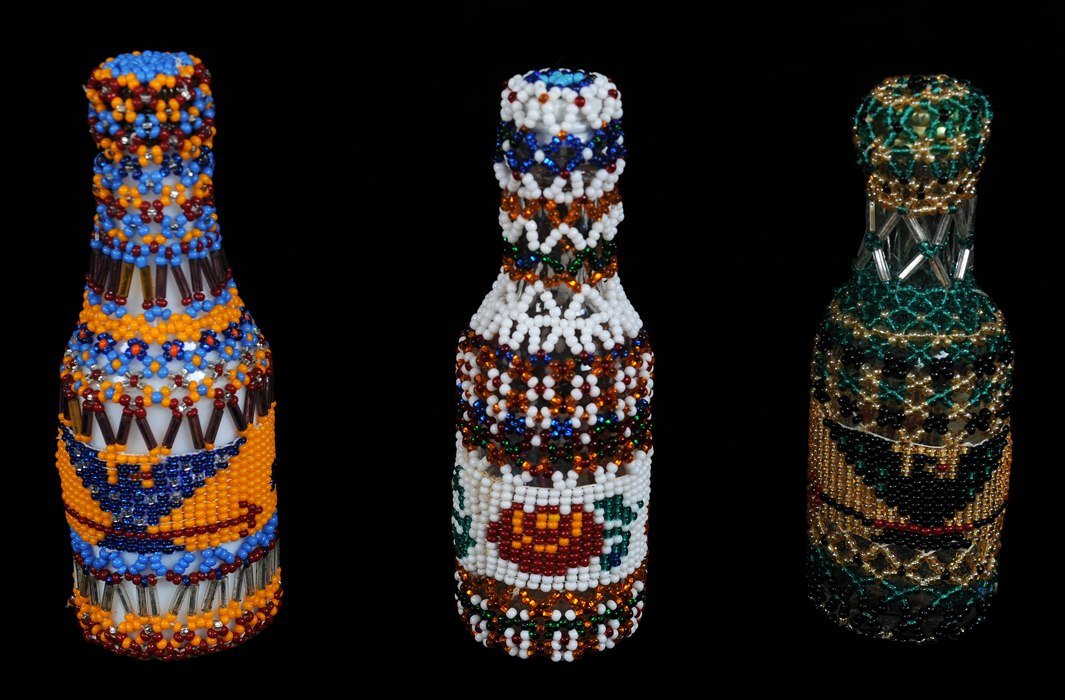 Three Nuu-chah-nulth Beaded Covered Bottles with Eagle