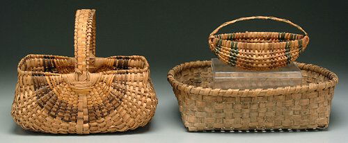 Vintage Lot of 9 Peterboro/Longaberger Handwoven BasketsLot of 2 antique baskets incl 1 potato stamp - probably both Native American - 5 1/2" tall x 124 days LeftLot of 2 antique miniature fixed handled baskets - 2 3/4" tall x 3 1/2"x2 3/4" & 2" tall x 2 1/2" x12 days LeftTwo Gathering Baskets. Large basket measures 15" T with some damage to edge. The other is 11" T withMar 29, 2026Country BasketsMar 28, 2026Shaker-style Wood Basket, Rectangular Basket and Gathering BasketMar 30, 2026Four Good Country BasketsMar 28, 2026A Trio of Japanese Bamboo Kago Zaru Drying Baskets6 days LeftA Woven Split Fiber Lidded Box with Geometric Decoration6 days LeftThree Vintage Grape Harvesting Baskets, Paniers a Vendanges6 hrs LeftVintage miniature buttocks basket with splint handleMar 29, 2026Rare African Coil Basket Rifle shell Casings Handle endsMar 29, 2026Four Fine Tennessee Splint Oak Baskets, attributed to Mildred Youngblood6 days LeftAfrican Kuba DRC Lidded Basket. Woven vegetal fibers.Mar 29, 2026Native American Woven Baskets, 2May 21, 2026THREE NORTHEAST NATIVE AMERICAN BASKETS.3 hrs Left
