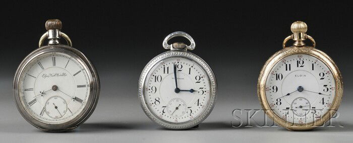 Three Open Face Double Sunk Dial Watches, Elgin Na