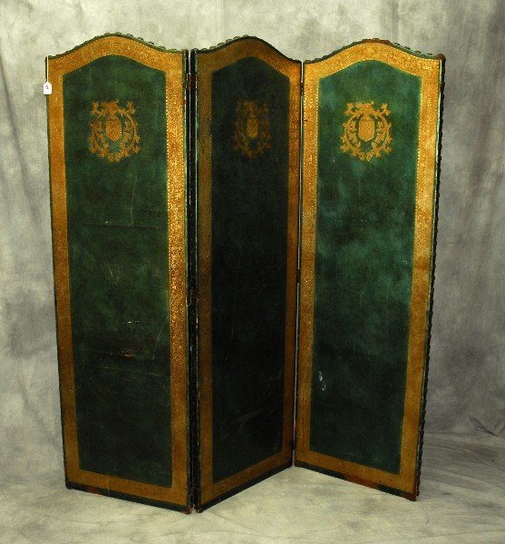 (4) MONUMENTAL ROCOCO PERIOD PARCEL-GILT & PAINTED ARCHITECTURAL DOORS, 149"HFeb 22, 2026(3) LOUIS XV STYLE GILT-METAL FIREPLACE SCREEN & CHENETSFeb 22, 2026Folding Screen, Rattan and Woven Wicker 3 PanelPainted Wood Reversible Teal & Green Folding Screen, 2 of 2Feb 21, 2026Tooled Leather Folding Screen "The Gothic Shop" Morgan Colt, New Hope, PAFeb 21, 2026Early 20th Century Hand Painted Leather Four Panel ScreenMar 02, 2026ENGLISH HERALDIC UPHOLSTERY 3-PANEL FOLDING FLOOR SCREEN, 65"HFeb 20, 2026FOUR PANEL FOLDING SCREEN IN CERUSED OAK HAVING RAISED PANEL GEOMETRIC DESIGN C 1945.Feb 24, 2026Vintage 1940 Four-Paneled Screen with Hand-Painted ScenesMar 03, 2026Louis XVI Style Carved and Painted Floor ScreenFeb 19, 2026LOUIS XVI STYLE PARCEL GILT PORTRAIT PAINTED 4-PANEL FOLDING SCREENFeb 22, 2026Vintage Regency Gracie Style 3 Panel Upholstered Screen in Kelly Green5 days LeftCHINESE LACQUERED COROMANDEL PANELS WITH BONE INLAYFeb 21, 2026Rosewood Folding Screen Four Seasons Flowers MotifFeb 22, 2026Anglo-Indian Carved Hardwood Four-Panel ScreenApr 14, 202696" Tall Vintage Oriental Lacquer ScreenMar 04, 2026