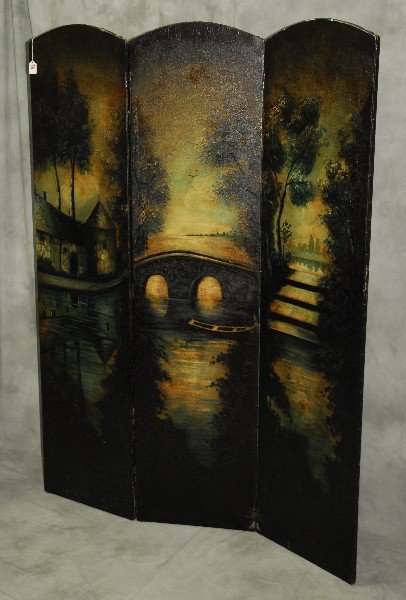 SoldPAINTED THREE-PANEL SCREENLANDSCAPE SCENE DIMENSIONS:68" H. PANELS 18" W TERMS: Hartzell's Auction Gallery will handle most of the shipping in-house. Gold and Silver must be paid for with Check, Wire Transfer, or Through LiveASee Sold Price
