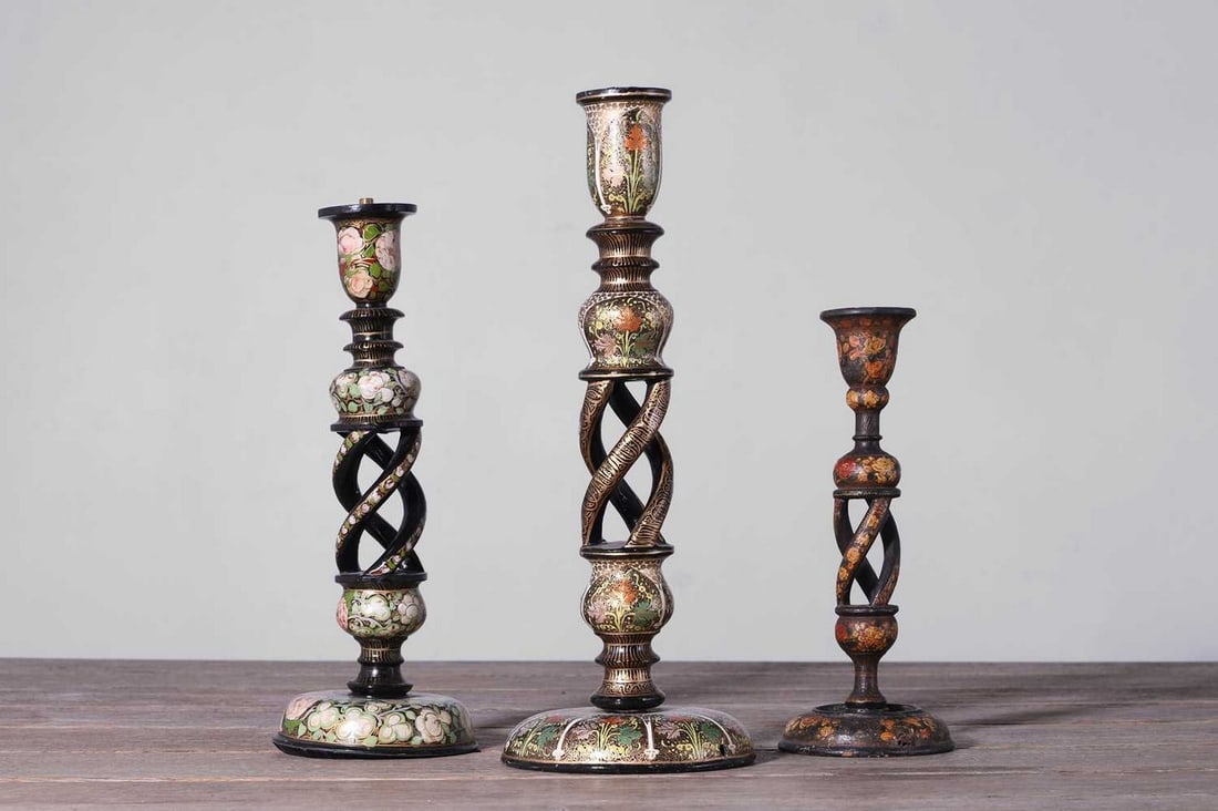 Three papier mâché candlesticks,