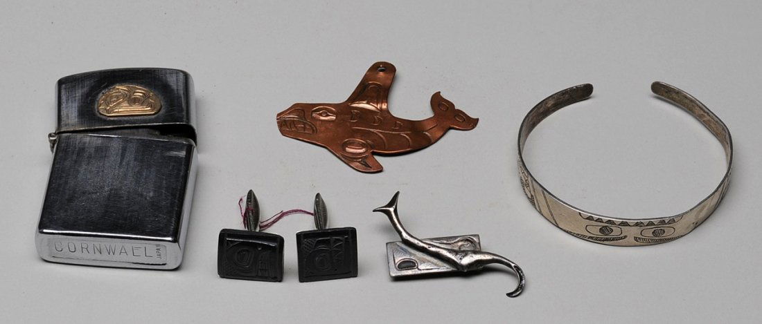 Three Pat McGuire Items; Argillite Cuff Links, Lig