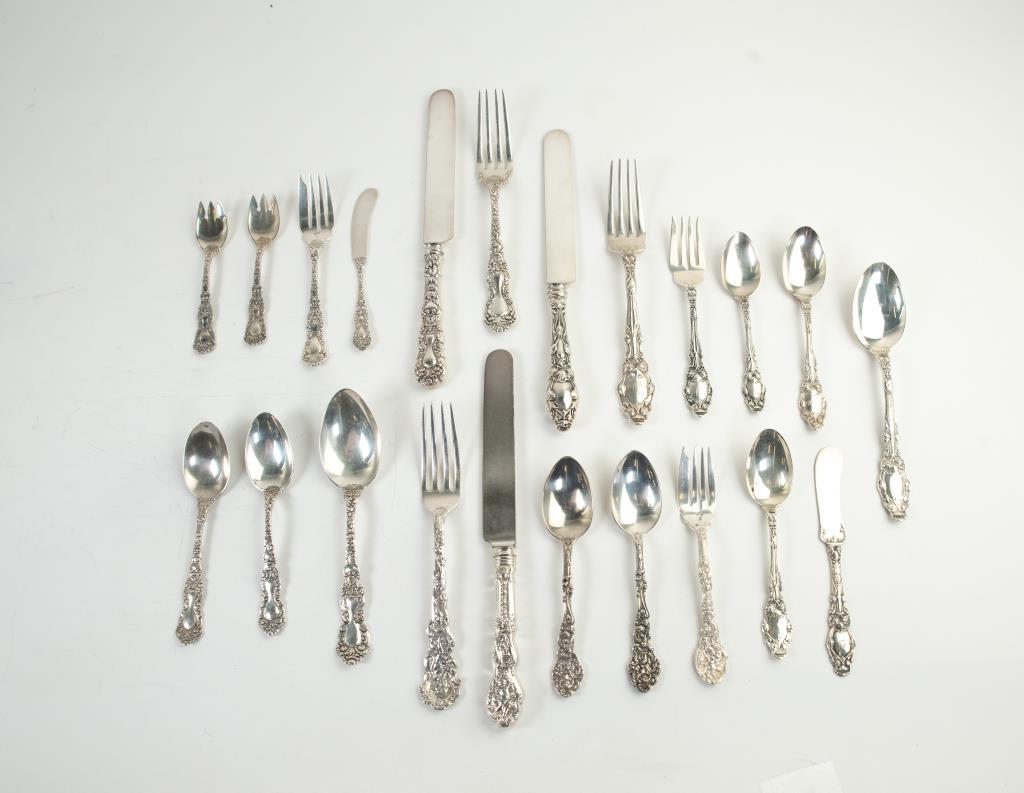 Lot Of Five Mixed Pattern Sterling Silver Dinner ForksFeb 28, 2026Towle Sterling Silver Flatware ServiceFeb 28, 20268 Piece Reed & Barton Sterling Silver "French Renaissance" FlatwareFeb 28, 2026Gorham sterling silver Versailles / Mythologique Art Nouveau flatware and serving pieces, 15pc.,23 hrs LeftGORHAM AND OTHER STERLING FLATWARE.5 days Left(89pc) A PARTIAL GORHAM STERLING SILVER FLATWARE SERVICE2 days LeftGorham Versailles art nouveau pattern sterling silver set of flatware fish and salad forks and23 hrs Left(72) PIECE GORHAM STERLING FLATWARE SERVICEMar 05, 2026Gorham Sterling "Buckingham" Flatware Service6 days LeftGroup of English Sterling Silver FlatwareMar 16, 2026Gorham Versailles Sterling Silver Flatware Set 12 Service 92 Pieces Multi-MotifMar 01, 202623 Piece Sterling Silver Wallace "Grande Baroque" Flatware SetFeb 28, 2026International Sterling Silver "Wild Rose" Flatware 686 GramsMar 28, 2026A Lunt sterling silver Eloquence flatware service, mid 20th century5 days LeftInternational Sterling "Angelique" Flatware Service6 days LeftStieff Sterling "Williamsburg Queen Anne" Flatware6 days Left