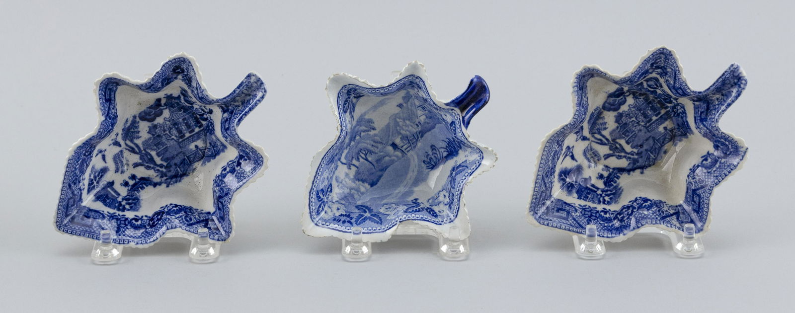 THREE PEARLWARE PICKLE DISHES Leaf-form, with blue
