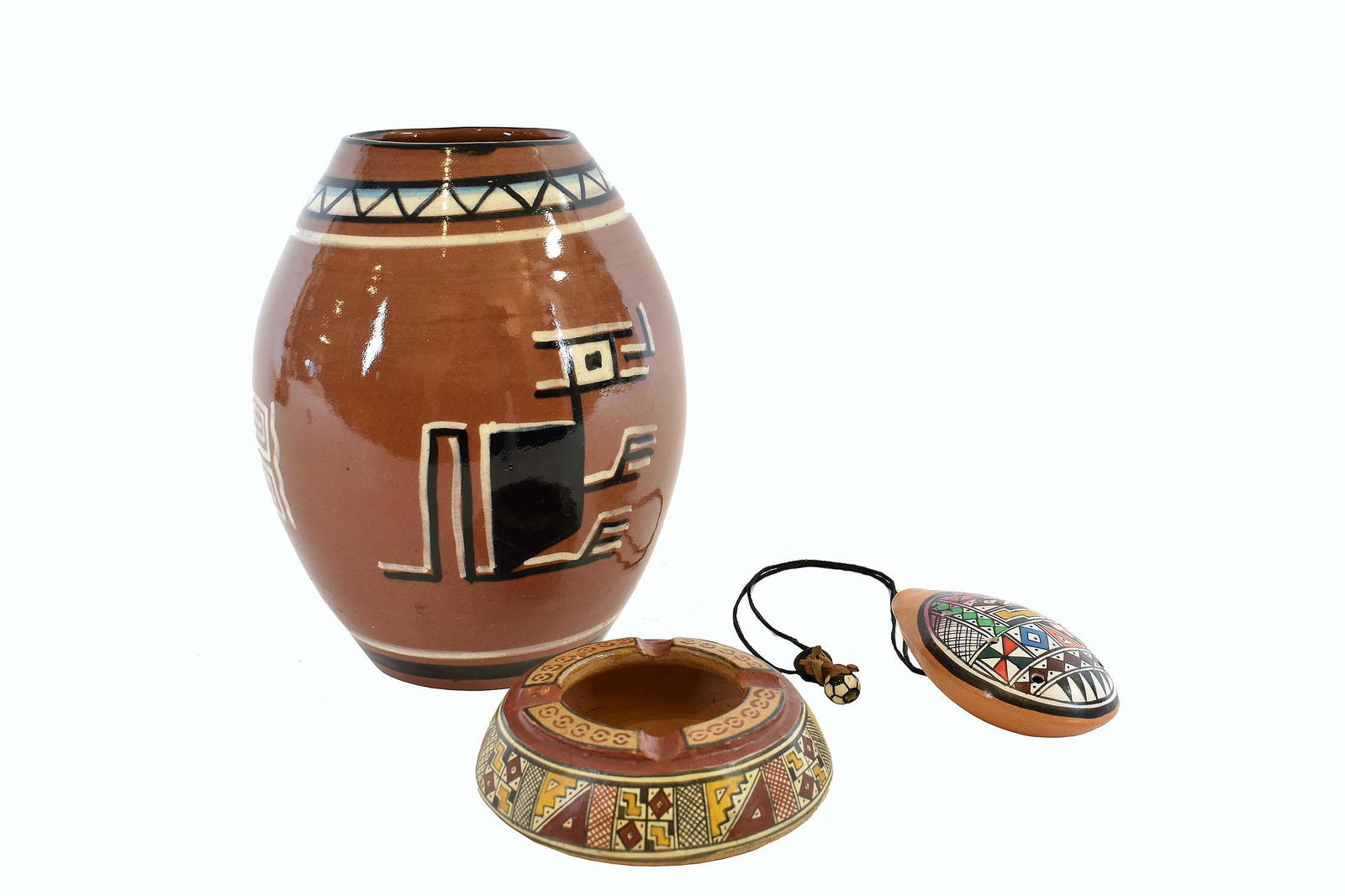 THREE PERUVIAN PAINTED POTTERY ITEMS