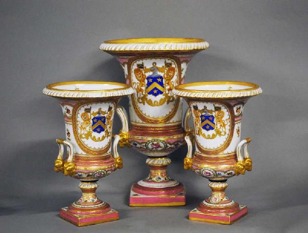 THREE PIECE "ARMORIAL" GARNITURE SET