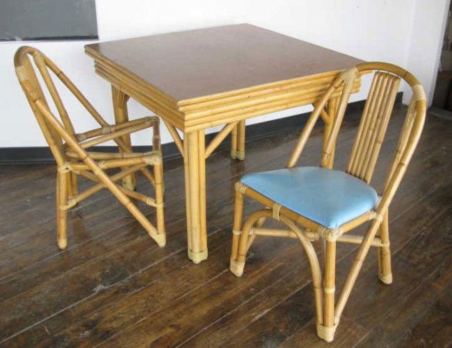 FAUX BAMBOO GAMES TABLE AND FOUR MATCHING CHAIRS HAVING LEAF DESIGN IN THE LEATHER C 1960.Kamelot Auctions4.4(346)$550(5 bids)10 hrs Left