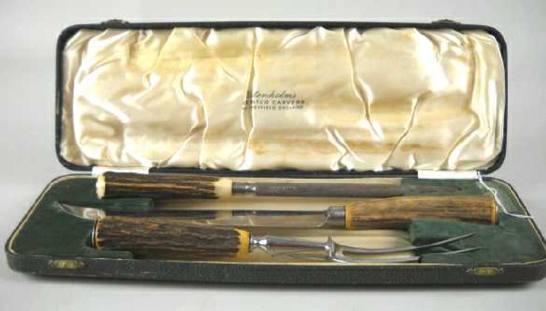 THREE PIECE BONE HANDLED CARVING SET