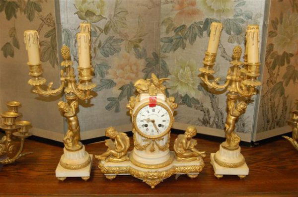 Antique French Sevres Porcelain & Dore Bronze Three Pcs Clock & Matching Candelabras SetFeb 08, 2026Japy Freres Gilt Bronze Candelabra Garniture Clock Set1 day LeftA French antique Louis XV style finely decorated gilt bronze and marble mantel clock setFeb 24, 2026An antique cathedral shaped and finely decorated mantel clock set in polished brassFeb 24, 2026A Large Three-Piece Mantel Garniture, Clock and Candelabra, Bronze, Decorated with Cherub Heads and6 days LeftA Three-piece Mantel Garniture, Janvier à Paris, Clock and Candelabra, Gilded Bronze and Marble,6 days LeftA Three-piece Mantel Garniture, Clock with Candelabra, Bronze.6 days LeftMonumental Bronze & Sevres Porcelain Clock SetFeb 07, 2026Tiffany and Company Brass Roman Numerals French Baroque Style Mantle Clock Five Light Candelabra Set1 day LeftLOUIS XVI STYLE PINK MARBLE AND ORMOLU CLOCK SET CICA 19002 days Left19th C. Figural Bronze And White Marble Clock Set With Pair of Candelabras7 hrs LeftClock Garniture Mantelpiece, Impressive 21 inches tall, Gilt Bronze, 19th CenturyFeb 15, 2026A large and antique French Rococo style gilt bronze mythological figural decorated mantel clock setFeb 24, 2026A three piece clock garniture together with a pair of three light candelabras4 hrs Left19th C. Beurdeley 3 Pc. Gilt Bronze Mounted Marble Clockset w/ Wedgewood Plaques, Circa 18807 hrs Left19TH C. BRONZE AND WHITE MARBLE FIGURAL CLOCK2 days Left