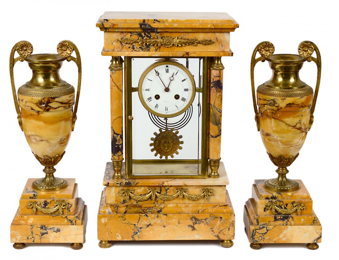 (3) FRENCH LOUIS XVI STYLE ORMOLU-MOUNTED MARBLE CLOCK & CANDELABRA GARNITURE SETMar 29, 2026(3) FINE FRENCH SILVERED & GILT-BRONZE CHINOISERIE MANTEL CLOCK & GARNITURE SETMar 29, 202619th C. Beurdeley 3 Pc. Gilt Bronze Mounted Marble Clockset w/ Wedgewood Plaques, Circa 18802 days Left(3) FRANZ HERMLE LOUIS XIV STYLE MANTEL CLOCK & CANDELABRA GARNITURE SETMar 29, 2026Louis XVI Style Gilt Bronze Mounted Blue Turquin Marble Three Piece Clock Garniture Paris Circa 18754 days Left19th C. Sevres Porcelain & Bronze Jewelled Clockset2 days Left(3) FRENCH LOUIS XV STYLE GILT-METAL MANTEL CLOCK & CANDELABRA GARNITURE SETMar 29, 2026Set of 3 French Ormolu Bronze Louis XVI Mantel Clock with Sevres Style Candelabra2 days LeftMagnificent 19th C. 3 Pc. Sevres Gilt Bronze & Porcelain Clockset, Circa 18802 days LeftFrench Louis XIV Style White Marble Bronze Clock and Candelabra Set of 31 day Left19th Century French Gilt Bronze & Marble Clock Garniture Set with Candelabra Lamps4 days LeftFrench 19th Century Ormulu Garniture Mantel Clock SetMar 29, 202619th C. 3 Pc. French Gilt Bronze and Marble Clockset2 days Left19th Century French Louis XVI Style Garniture Gilt Bronze Clock SetMar 29, 20263-PIECE LOUIS XVI STYLE CLOCK GARNITURE SETMar 26, 2026French Bronze Mantle Clock and Candelabras, Ca. 19th C., H 20" 3 PCS12 hrs Left