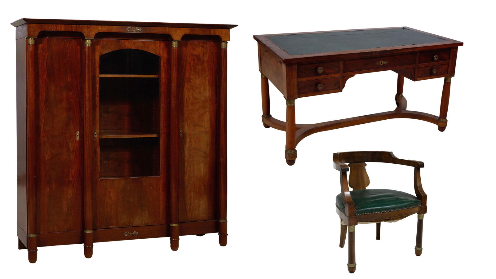 Three Piece French Empire Ormolu Mounted Walnut Library Suite, 19th c.,