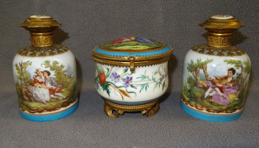 Three piece Sevres dresser set