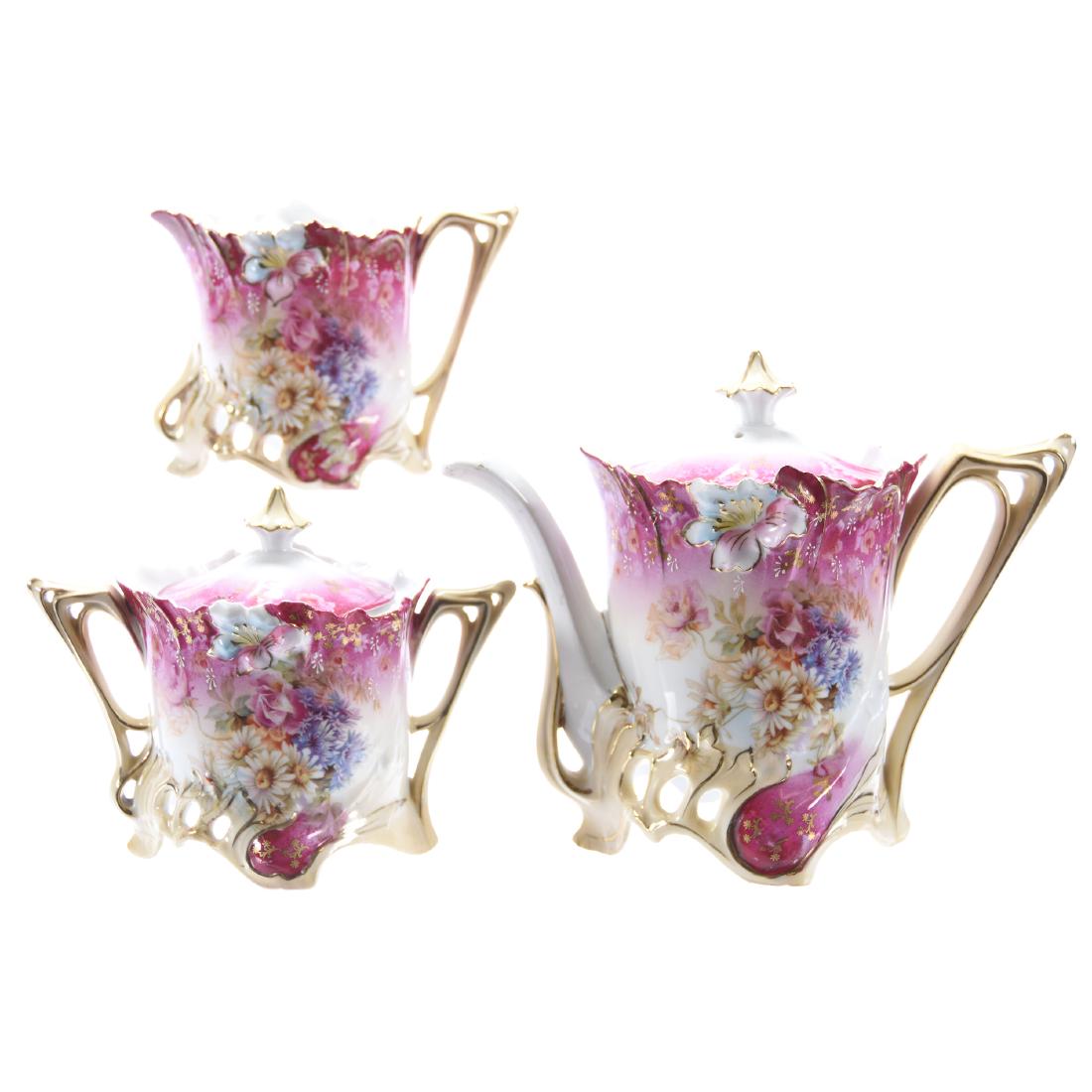 Three Piece Tea Set Unmarked Prussia
