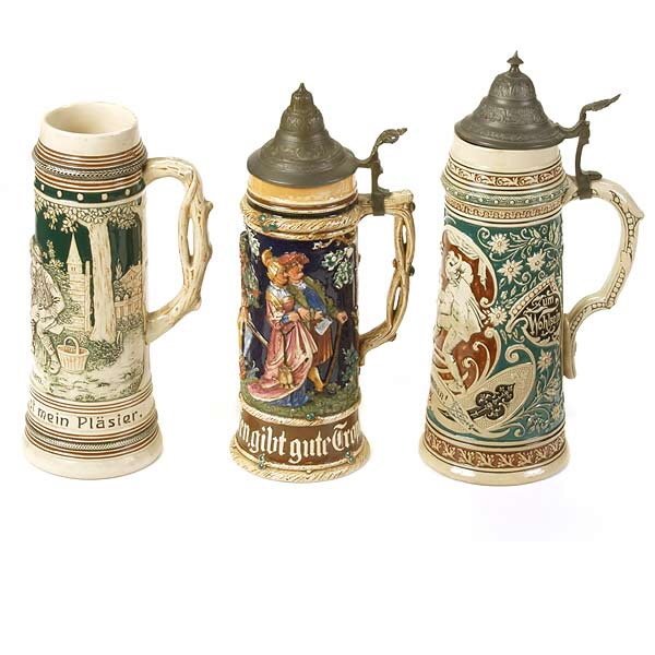 Three PreWar German Ceramic Beer Steins