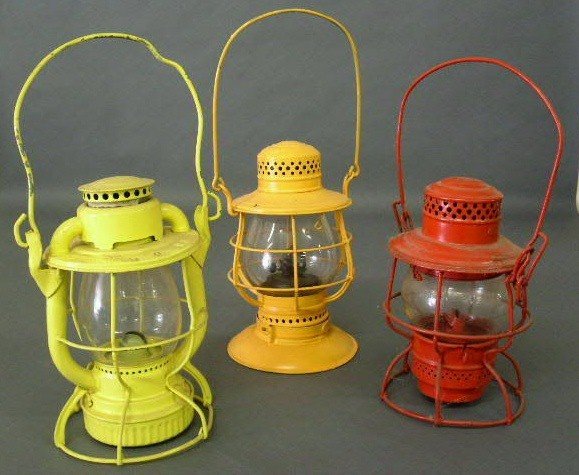 Three railroad lanterns- yellow Dietz frame marked