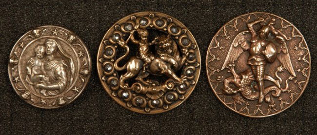 THREE RELIGIOUS THEME BUTTONS. All large stamped br