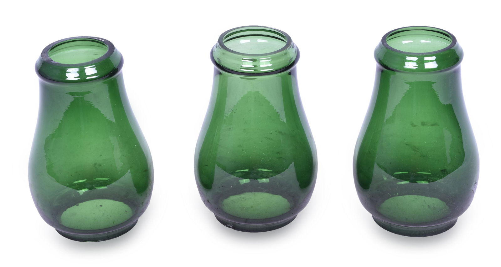 Three Reproduction Green Roll Top Lantern Globes