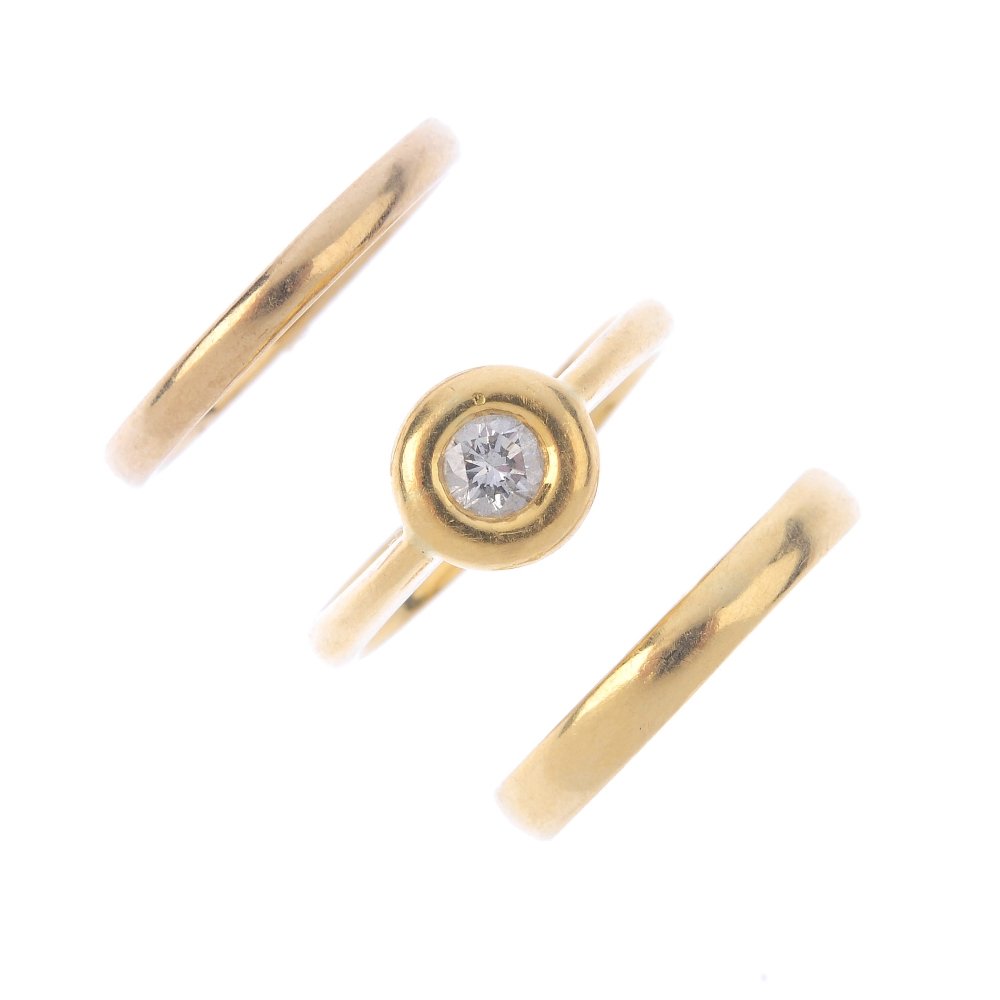 Three rings. To include a brilliant-cut diamond collet